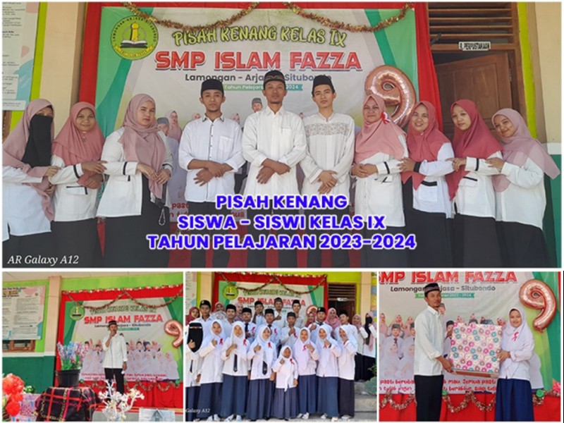 SMP ISLAM FAZZA - 20 Mei 2024 SMP Islam FAZZA menggelar acara Pisah Kenang bagi siswasiswi kelas IX tahun pelajaran 2023-2024 pada hari ini. Acara yang berlangsung meriah ini diadakan di Halaman SMP Islam FAZZA dan dihadiri oleh para siswa, guru, serta orang tua siswa.
